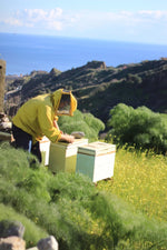 Rosario fell in love with bees as a child, when his father gave him a hive. Since then he has taken care of it with delicacy, producing an organic, non-intensive honey, respectful of biodiversity. He travels with his bees throughout Sicily, chasing the best blooms. His honey smells of orange blossoms, sulla or chestnut.